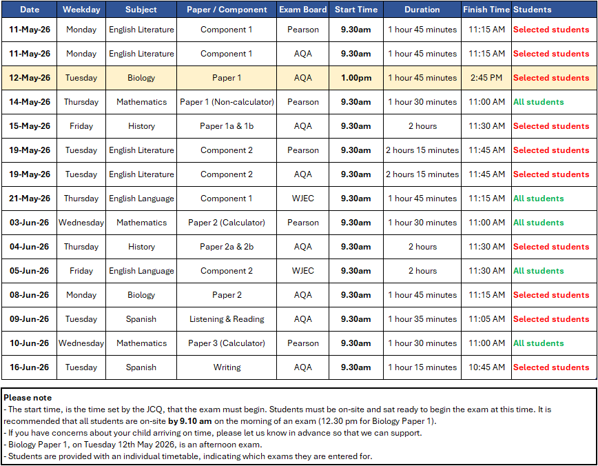 GCSE Exam timetable 2026