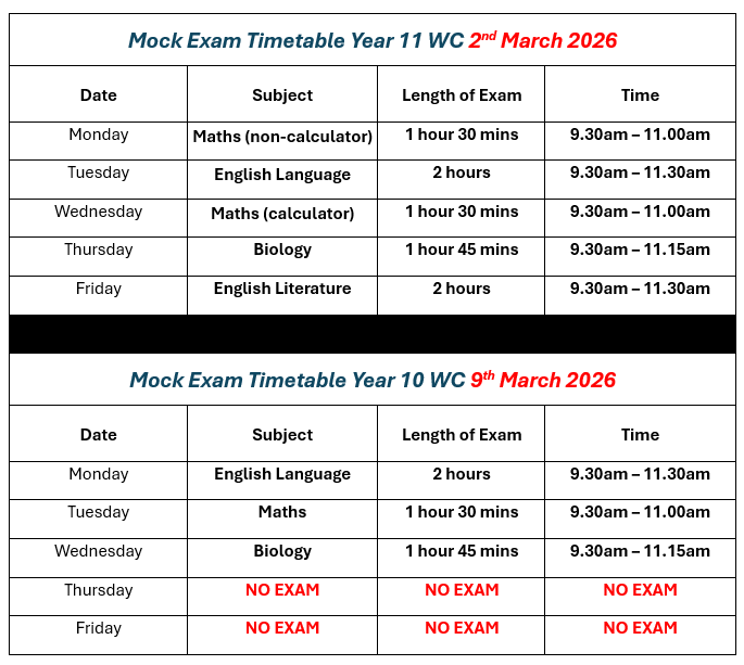 Mock Exam Timetables: